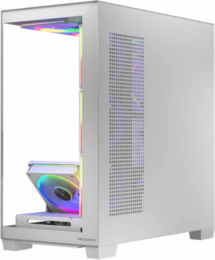 De computerbehuizing Stellar 8F ARGB is ontworpen voor degenen die visueel overzicht over hun componenten willen, met een voor- en zijpaneel van gehard glas. Het opent eenvoudig dankzij de scharnierbevestiging aan de zijkanten, wat het monteren en onderhouden van de hardware vergemakkelijkt.