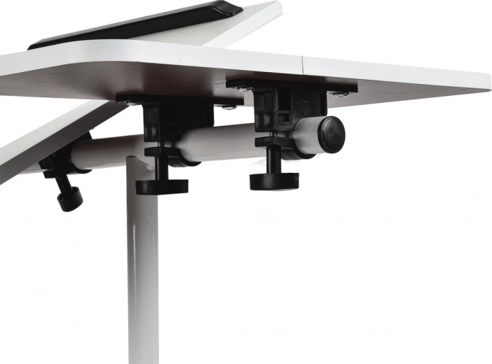 Een uitzonderlijke eigenschap is de onafhankelijke instelling van de hellingshoek van beide panelen tot 90°. Het grotere paneel is perfect voor een laptop, terwijl het kleinere kan worden gebruikt voor een muis, documenten, tablet of een kopje koffie. Dit maakt ergonomische instellingen voor verlichting van rug en polsen mogelijk.