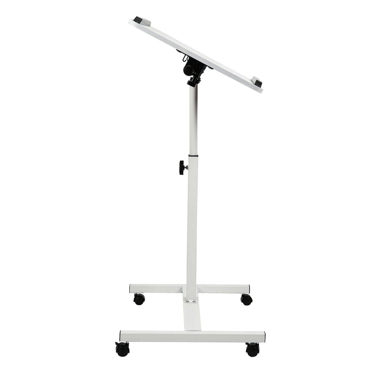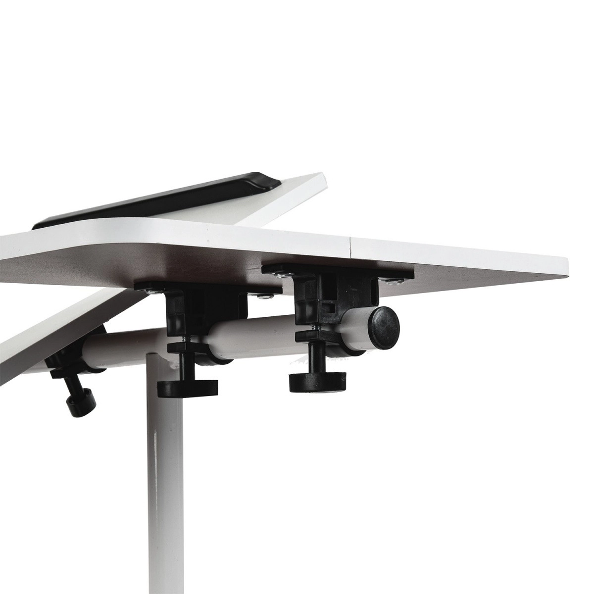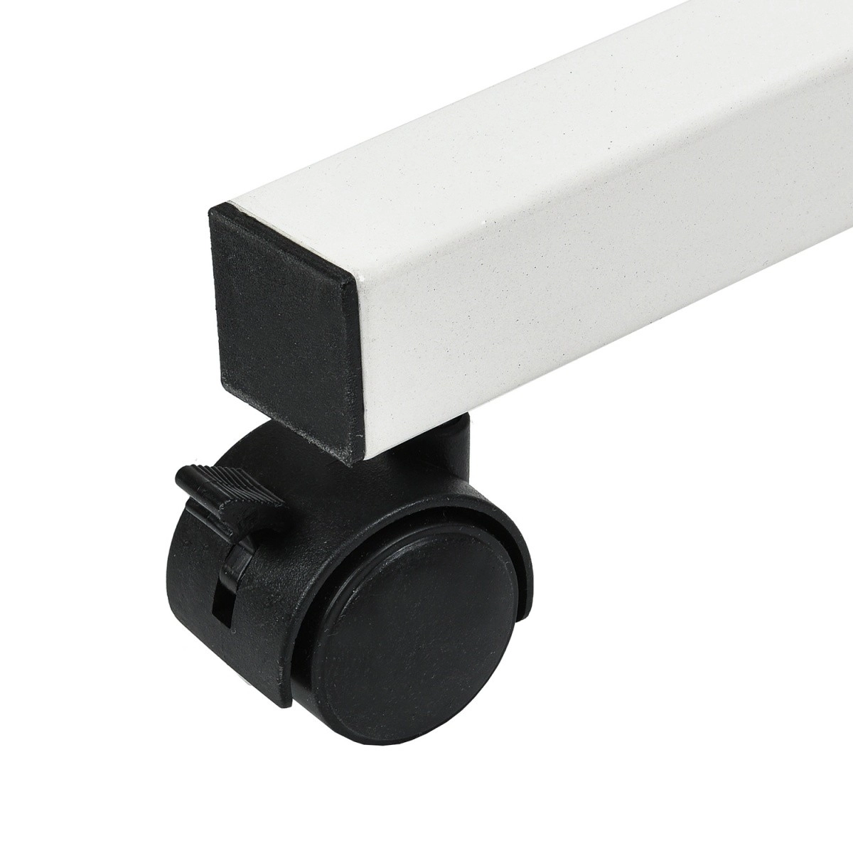 De tafel heeft vier wielen voor eenvoudige verplaatsing en twee vergrendelingsmechanismen voor stabiliteit. Dit zorgt ervoor dat de tafel op zijn plaats blijft, zelfs bij grote hellingshoeken, wat een perfecte mobiele werkomgeving biedt.