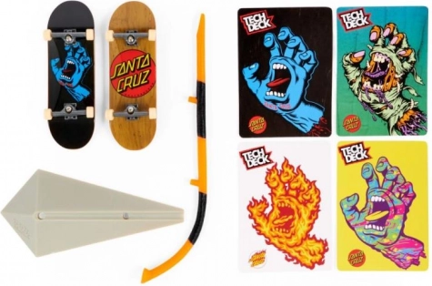 Til je fingerboard-vaardigheden naar een hoger niveau met het dubbelpak van Tech Deck. In de verpakking vind je twee volledig voorgemonteerde boards met realistische trucks en wielen, een duurzaam obstakel om trucs te oefenen en kaarten met illustraties die je stap voor stap meenemen van ollie tot aan grinds. De compacte set is ideaal voor thuis en onderweg en is leuk voor zowel beginners als gevorderden.