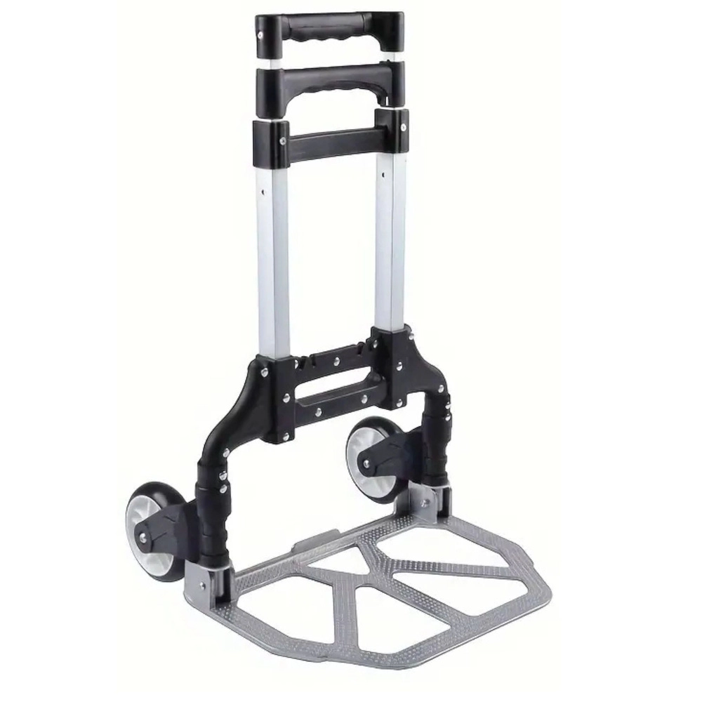 Deze wagen is uitgerust met een opvouwbaar laadplatform van 39 × 21 cm, dat eenvoudig dozen, kratten en andere items tot een gewicht van 70 kg kan dragen. De telescoopgreep met drievoudige hoogte-instelling biedt comfort bij het sturen voor personen van verschillende lengtes. Duurzame wielen met een diameter van 120 mm zorgen voor stabiliteit en grip, zelfs op oneffen oppervlaktes.