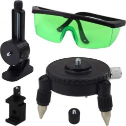 De verpakking bevat veel montagemateriaal, inclusief beugels, twee accu's, afstandsbediening, verhoogd platform en stevige draagkoffer met dempingsschuim. Perfecte keuze voor tegels, meubelmontage, het bepalen van niveaus bij trappen, plafondconstructies en wanddecoratie.
