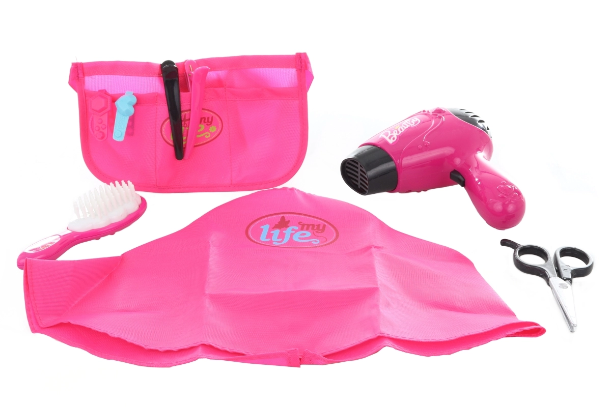 Dankzij de overzichtelijke opbergschort hebben kinderen al het gereedschap bij de hand en de kapmantel zorgt voor extra authenticiteit. De set is ontworpen voor veilig gebruik door kinderen en is dankzij de compacte afmetingen gemakkelijk op te ruimen en mee te nemen.
