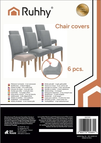 Belangrijkste kenmerken van de lichtgrijze RUHHY stoelhoezen: