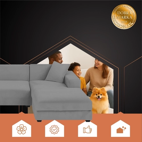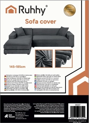 De hoes van het merk RUHHY van zachte, elastische velours is de ideale oplossing voor het beschermen en opfrissen van een hoekbank met chaise longue. Sluit perfect aan op het meubel, schuift niet weg en geeft het interieur een knusse, elegante uitstraling. De donkergrijze kleur is universeel en de maat 145 - 185 cm is geschikt voor de meeste standaard hoekbanken.