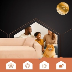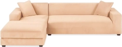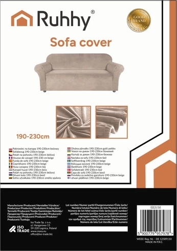 De elastische bankhoes van het merk RUHHY van zachte velours is de ideale keuze om je hoekbank te beschermen en op te frissen. Hij past zich gemakkelijk aan de vorm van het meubel aan, blijft goed op zijn plaats en geeft het interieur een knusse en elegante uitstraling. De beige kleur past bij veel interieurstijlen.