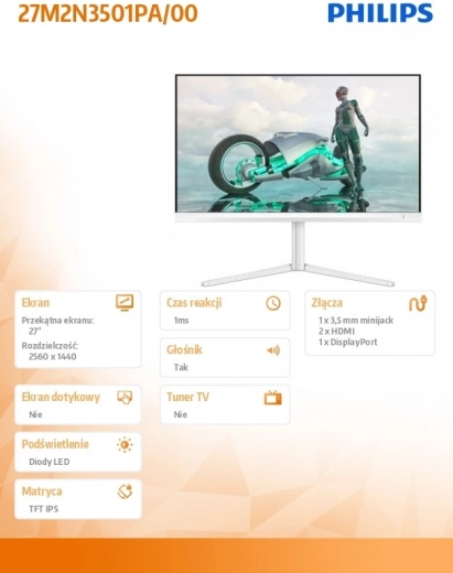 Geniet van een vloeiend beeld en nauwkeurige kleuren met deze 27" IPS-monitor, die een extreem hoge verversingssnelheid van 260 Hz biedt, aansluitingen HDMI x2 en DisplayPort, volledige ergonomie met pivot en ingebouwde luidsprekers voor helder geluid zonder externe audio.