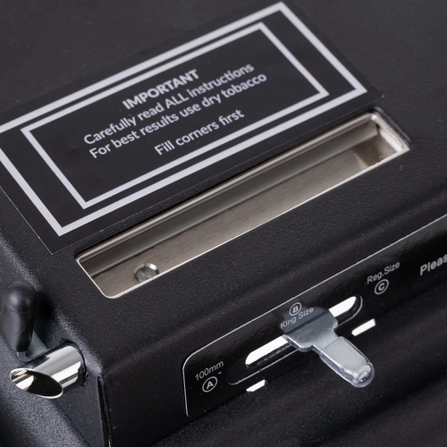 Profiteer van flexibiliteit dankzij de compatibiliteit met drie verschillende hulslengtes, waardoor u eenvoudig aan uw behoeften kunt aanpassen. Deze vulmachine is eenvoudig en intuïtief in gebruik, wat hem ook ideaal maakt voor beginners. Geschikt voor standaard hulzen met een diameter van 8 mm, waardoor hij te gebruiken is met de meest gangbare filters op de markt.