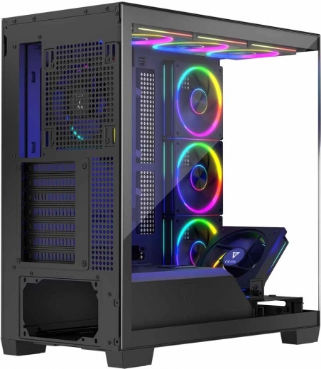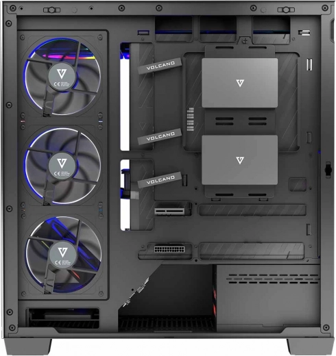 De behuizing Volcano Stellar ARGB Midi is ontworpen voor degenen die een stijlvolle en functionele computer willen hebben. Het biedt aantrekkelijke glazen panelen en uitstekende koeling met acht vooraf geïnstalleerde ARGB-ventilatoren.