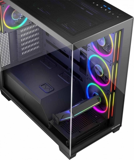De Volcano Stellar ARGB Midi heeft een innovatief ontwerp waarmee alle componenten zichtbaar zijn door de glazen panelen. De modulaire frameconstructie maakt eenvoudige montage en onderhoud mogelijk. Pas de behuizing aan de nieuwste technologieën aan, inclusief waterkoeling tot radiatoren van 360 mm en installatie van lange grafische kaarten.