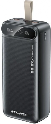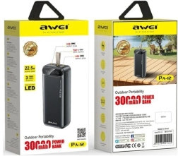 Powerbank Awei met een capaciteit van 30.000 mAh is de perfecte oplossing voor reizigers, kampeerders en dagelijkse gebruikers. Biedt langdurige energie voor al je apparaten, waar je ook bent.