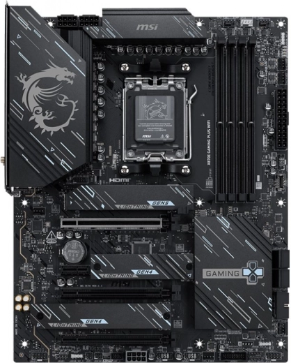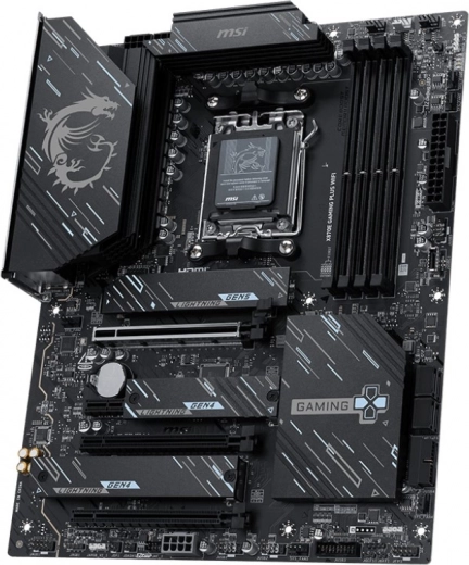 X870E GAMING PLUS WIFI moederbord is ontworpen voor uitstekende game-ervaringen dankzij het gebruik van duurzame componenten. Voorzien van Wi‑Fi 7, 5G LAN, ultrasnelle USB4 en een PCIe 5.0-oplossing met extra PCIe-voeding, klaar voor non-stop gamen met AMD Ryzen 9000-serie processors.