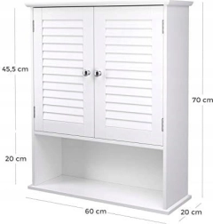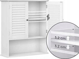 De kast beschikt over een verstelbare binnenplank, die u kunt afstemmen op uw behoeften voor het opbergen van verschillende artikelen, zoals cosmetica, schoonmaakmiddelen of hoge flessen. De deur met stevige metalen scharnieren garandeert een lange levensduur en stabiliteit, terwijl de zilverkleurige handgrepen de kast een elegante uitstraling geven die in uiteenlopende interieurs past.