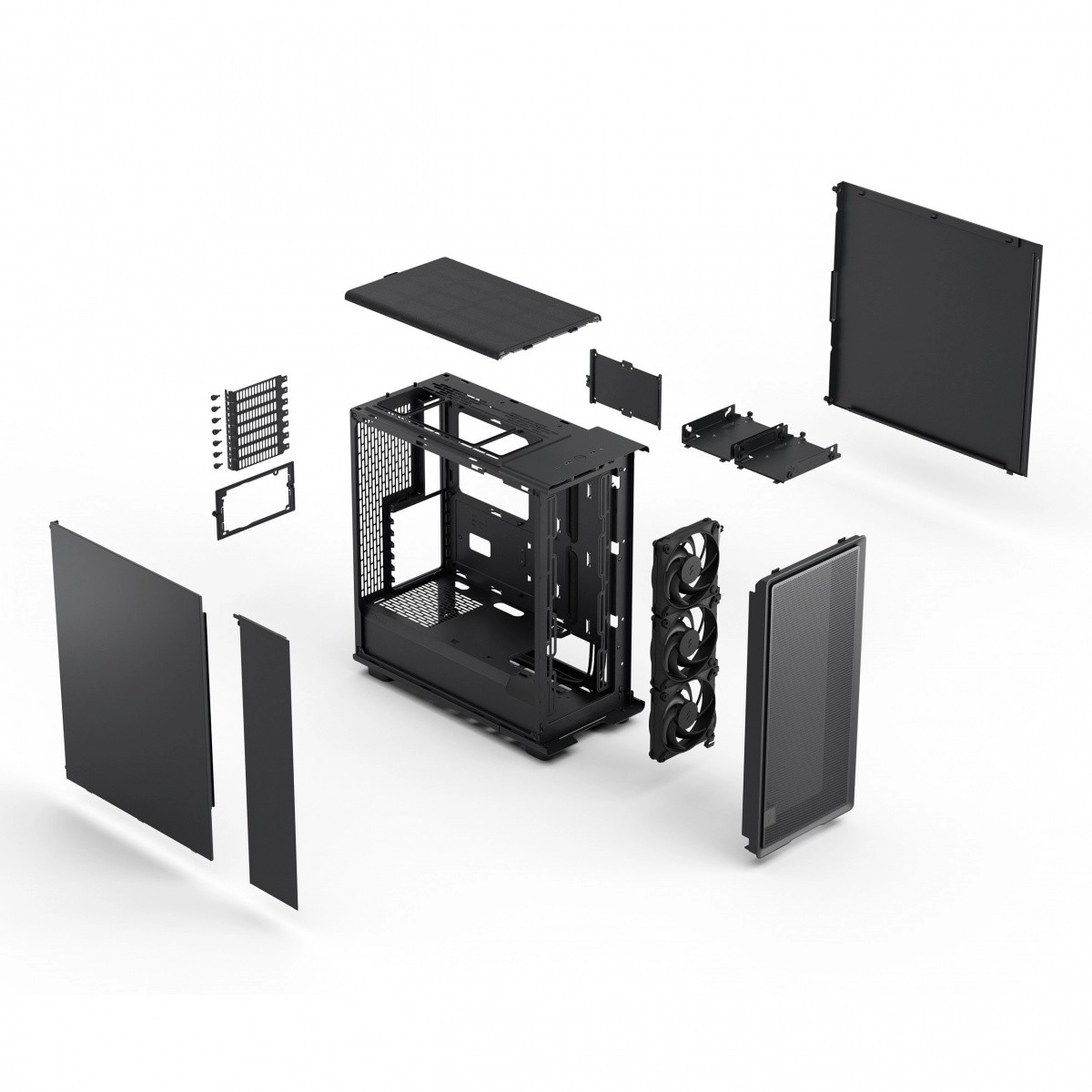 De Epoch Black Solid-behuizing is ontworpen voor maximale luchtstroom dankzij het meshvoorpaneel en drie krachtige Momentum 12-ventilatoren. Ondersteunt grafische kaarten tot 372 mm lengte en is compatibel met radiatoren tot 360 mm.