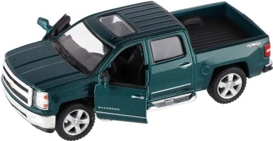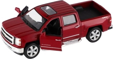 Geniet van een gedetailleerde replica van de iconische pick-up CHEVROLET Silverado 2014. Metalen carrosserie met kunststof details, precieze lak en natuurgetrouwe verhoudingen zullen zowel jonge bestuurders als verzamelaars bekoren. Het autootje heeft openende deuren, zodat je het fraai uitgewerkte interieur kunt bekijken.