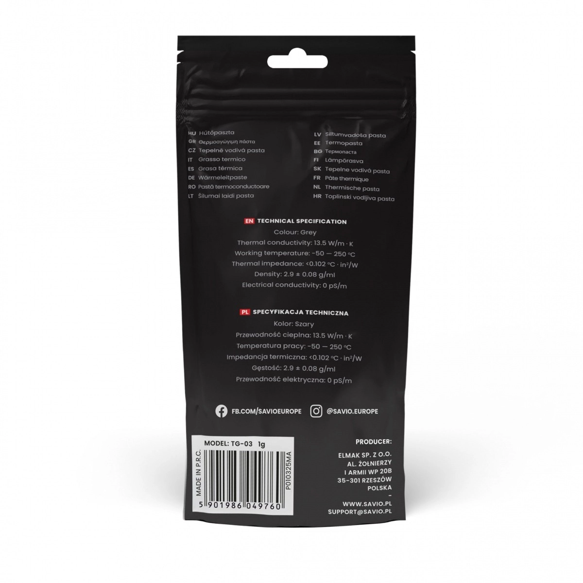 De thermische pasta Savio Glacier TG-03 is ontworpen om de warmteoverdracht tussen de processor en de koeler te verbeteren. Dankzij de consistentie is het eenvoudig aan te brengen, zelfs voor minder ervaren gebruikers. De pasta vult microscopische openingen op het oppervlak en zorgt voor een hoge thermische geleidbaarheid.