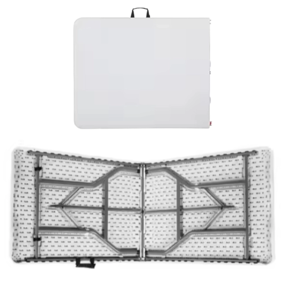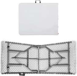 Na het inklappen verandert de tafel in een praktische koffer, wat ruimte bespaart en gemakkelijk in de kofferbak van de auto past. Een ideale keuze voor cateringbedrijven, picknicks, beurzen, markten, barbecues en huisfeesten.