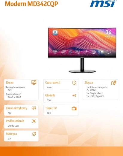 De Modern MD342CQP tilt productiviteit en entertainment naar een hoger niveau. Dankzij de UWQHD-resolutie op een 34"-diagonaal heb je meer ruimte voor apps, tijdlijnen en zijpanelen. De kromming van het display trekt je in de actie en verbetert het perifere zicht, of je nu foto’s bewerkt, video monteert of in games opgaat.