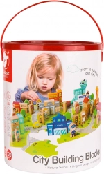 Met deze set kunnen kinderen typische stedelijke gebouwen bouwen zoals een school, politiebureau, brandweerkazerne, luchthaven, ziekenhuis, bank, restaurant, dierenwinkel en meer. Het speelgoed is gemaakt van natuurlijke, biologisch afbreekbare en hypoallergene materialen, wat maximale veiligheid garandeert.