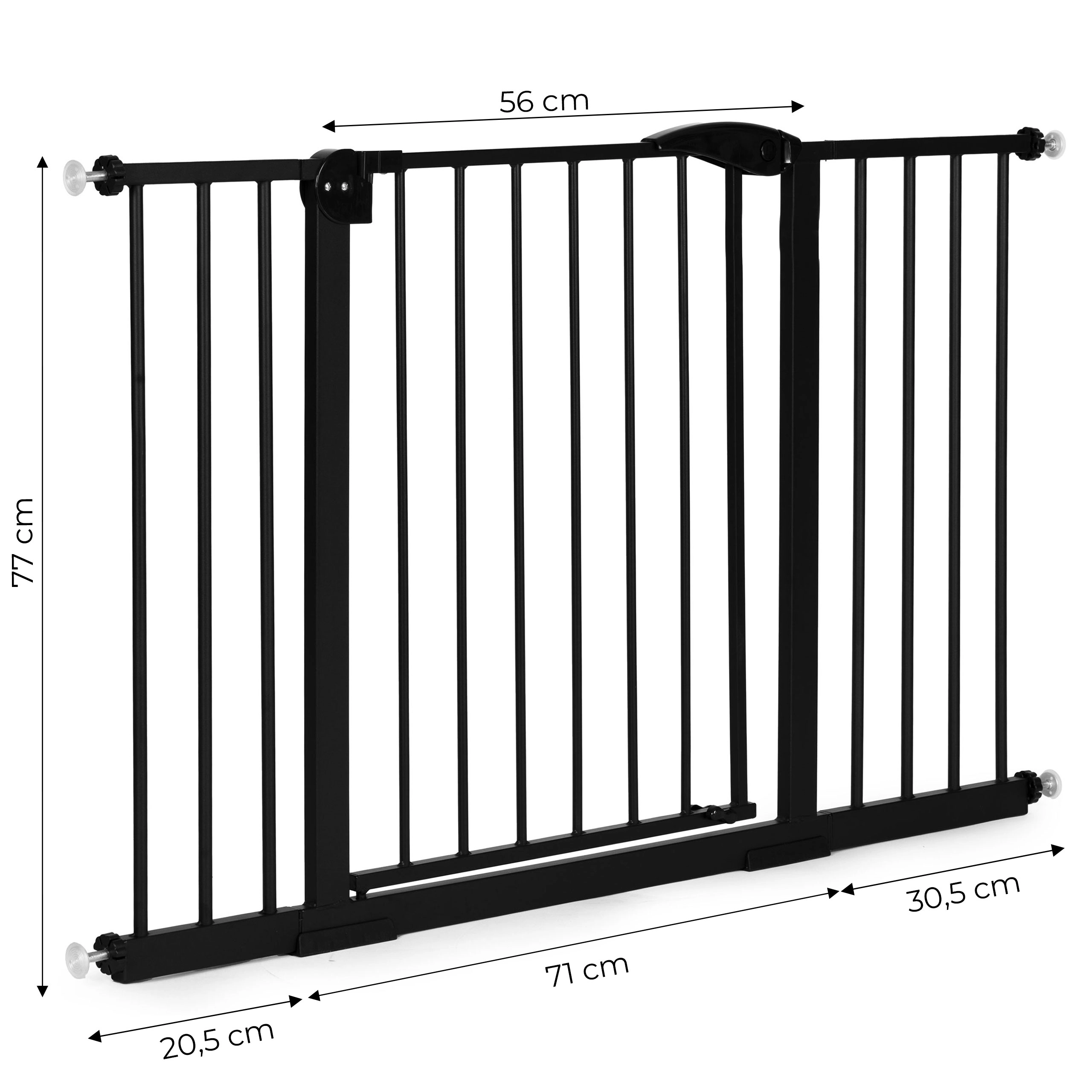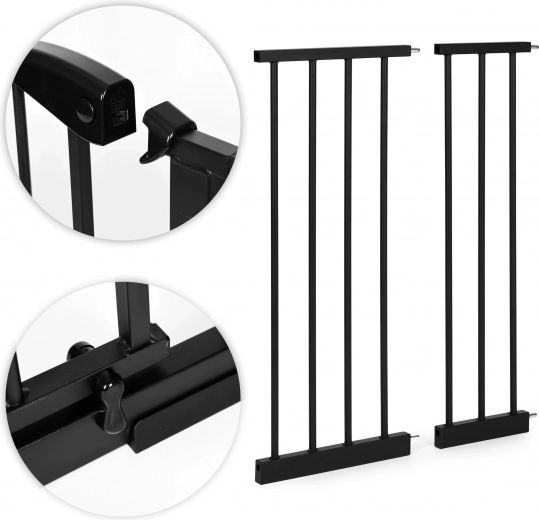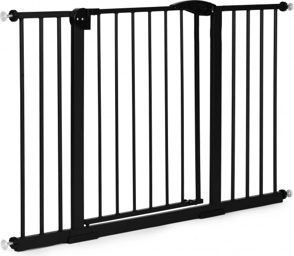 Eenvoudige installatie zonder boren dankzij het 4-punts drukmontagesysteem, dat het hek stevig op zijn plaats houdt zonder muren of kozijnen te beschadigen. Als u een permanente montage verkiest, kunt u de meegeleverde speciaal gevormde pads en schroeven gebruiken.