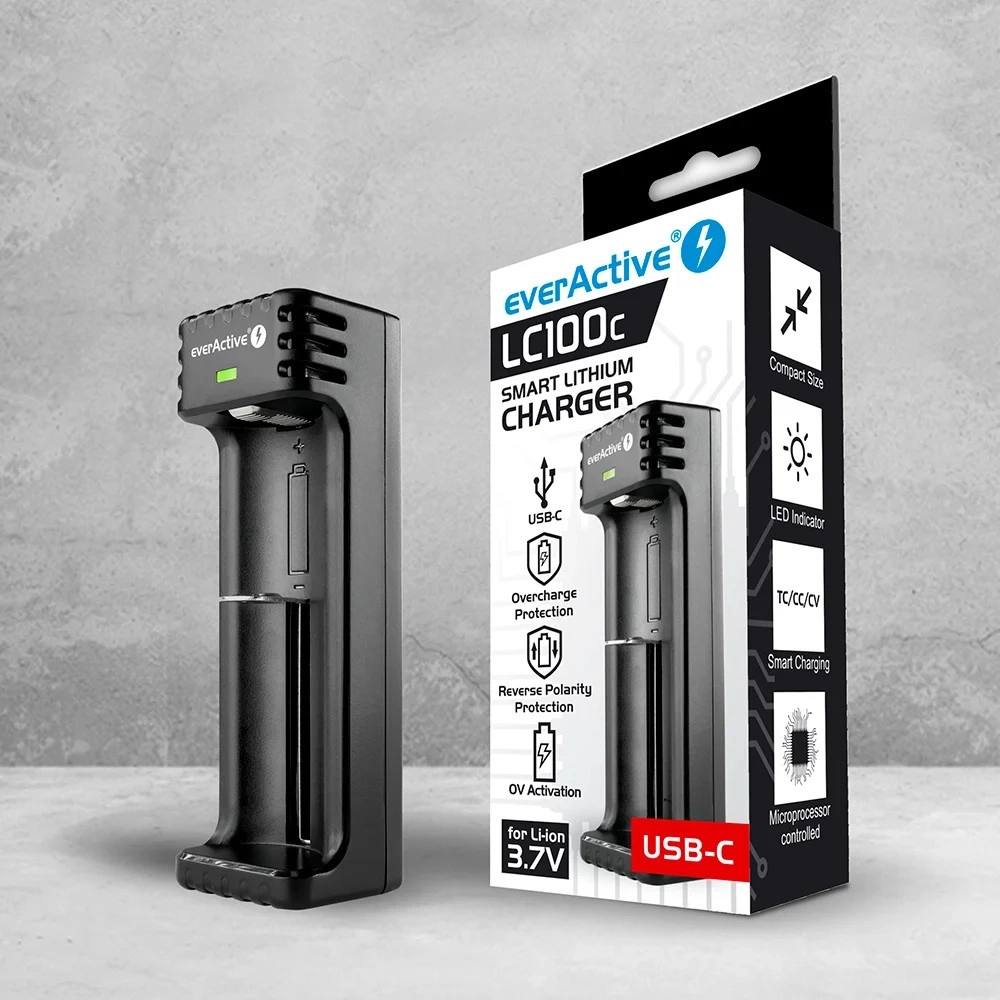 De EverActive LC100C lader is een betrouwbaar en eenvoudig apparaat voor het opladen van één accu. Hij is uitgerust met een microprocessor voor het aansturen van het oplaadproces en biedt een hoge laadstroom tot 1000 mA.