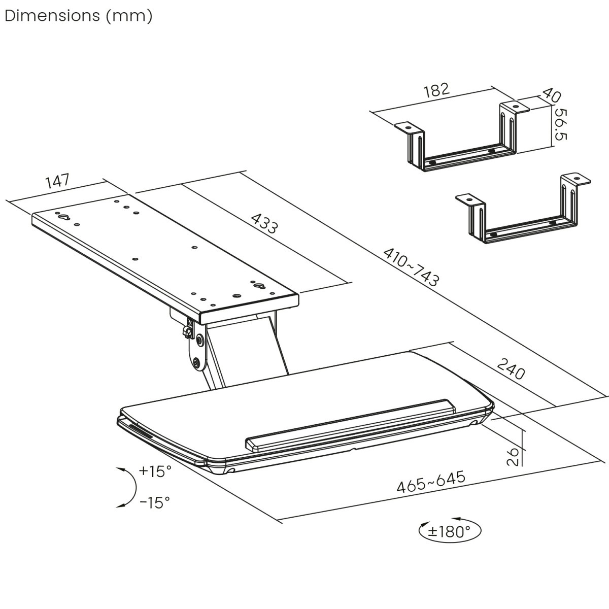 Deze lade is gemaakt van hoogwaardige materialen die stabiliteit en duurzaamheid garanderen. Hij kan een gewicht tot 5 kg dragen, waardoor zowel lichte als zwaardere toetsenborden veilig gebruikt kunnen worden. De functionaliteit wordt uitgebreid met een uitschuifbaar muisplateau dat zowel naar rechts als naar links kan worden uitgeschoven, ideaal voor zowel rechts- als linkshandigen.