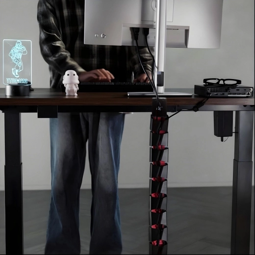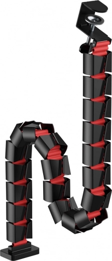 Zwarte segmenten met rode scharnieren passen perfect bij een gamingstijl en benadrukken het karakter van uw werkplek. Dankzij de lengte van 1345 mm is hij ideaal voor grotere bureaus en indien nodig kunt u de lengte verkorten door afzonderlijke modules te verwijderen. Deze organizer verbetert niet alleen de look van uw setup, maar vergemakkelijkt ook het kabelbeheer, waardoor het risico op beschadiging wordt verminderd. Het is een klein detail dat een groot verschil maakt, vooral als u waarde hecht aan orde en stijl.