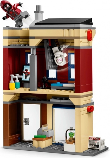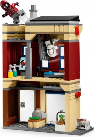 Dit gedetailleerde stadsdecor bestaat uit drie koppelbare gebouwen: het appartement van Miles Morales boven een juwelier, de Oscorp-toren en het appartement van Venom boven een kruidenierswinkel. Elke module bevat thematische inrichting en accessoires die creatief verhalen vertellen stimuleren, en met transparante elementen kunnen de personages dynamische poses aannemen alsof ze zo uit de strip komen.