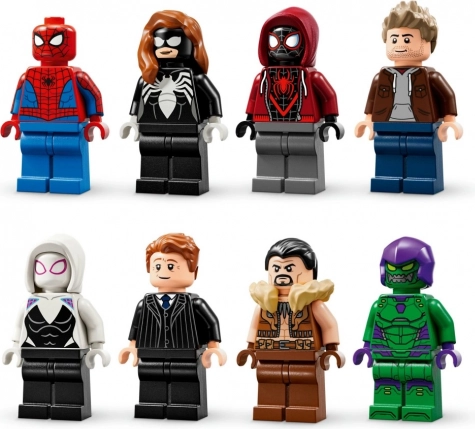 In de doos vind je 8 verzamelbare minifiguren – Spider-Man, Spider-Woman, Miles Morales (met motor), Eddie Brock, Ghost-Spider, Norman Osborn, Kraven de jager en de Groene Kabouter (met zweefvliegtuig). Dankzij de modulaire opzet bouw je de set eenvoudig om en creëer je je eigen actiestraten voor spel en display.