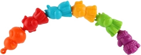 Elk diertje heeft een vorm en greep die zo zijn ontworpen dat kinderen vanaf 12 maanden ze gemakkelijk tot een lange ketting kunnen koppelen en weer losmaken.