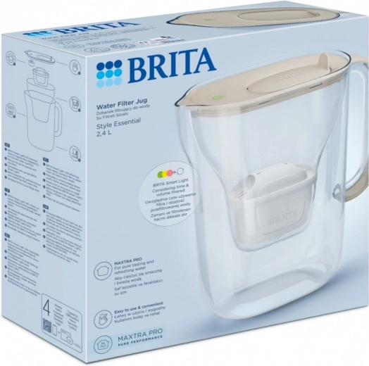 Comfort met BRITA Style Essential: De kan is uitgerust met een moderne LED-indicator die de tijd en de hoeveelheid gefilterd water bijhoudt en herinnert aan het vervangen van het filter wanneer dat nodig is.