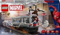 Speel de beroemde scène na: Spider‑Man stopt een razende trein met zijn web terwijl Doc Ock aanvalt met mechanische tentakels. Actie en spanning op elke stud.
