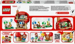 Ontdek de magie van Toads huisfeest. Deze kleurrijke set biedt een gedetailleerd Toad-huis met keuken, slaapkamer (met een schilderij van Peach’ kasteel) en verwijderbare meubelstukken voor eenvoudig aanpassen. De buitenscène met picknicktafel, feestaccessoires en een bouwbare grammofoon met draaiplateau nodigt uit tot creatief spel en verhalen uit de SUPER MARIO gamewereld.