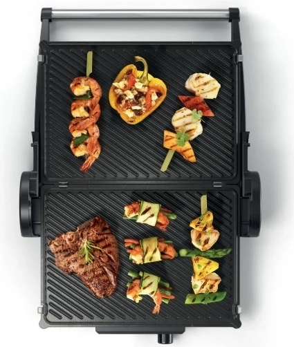 Geniet van de 3-in-1 grillmogelijkheid voor verschillende culinaire ervaringen – contact-, tafel- of halfopen grillen met gratineerfunctie.