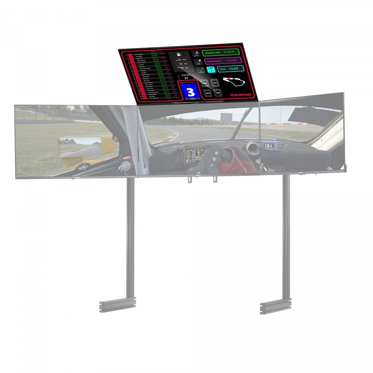 Extra houder voor 4 monitoren zwart is de ideale oplossing voor gepassioneerde fans van racesimulaties, die hun ervaring willen uitbreiden met een monitor boven hun hoofd.