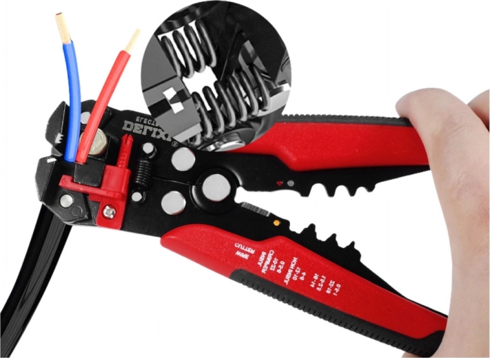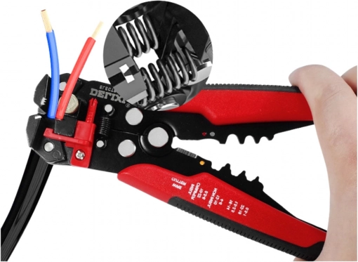 Automatische 3-in-1 striptang voor werken met draden en kabels van verschillende diameters. Dankzij het automatische frontmechanisme verwijdert hij snel en nauwkeurig de isolatie zonder aders te beschadigen, maakt krimpen van geïsoleerde en niet-geïsoleerde connectoren mogelijk en knipt draden. Ergonomische anti-slip handgrepen, krachtregeling en lengteaanslag zorgen voor comfortabel en herhaalbaar werk thuis en in de werkplaats.