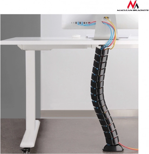 Breng orde in de wirwar van kabels en bescherm ze tegen beschadiging. De MACLEAN kabelorganizer voor op het bureau camoufleert en leidt kabels doeltreffend, zodat ze niet in de weg zitten en het totaalbeeld van uw werkplek niet verstoren. De zwarte kleur oogt onopvallend en past bij moderne inrichting.