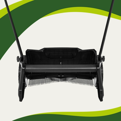 De verstelbare borstelhoogte van 0–40 mm maakt precieze opname mogelijk op verschillende ondergronden – van gazon tot verharde paden. De lichte constructie met grote wielen zorgt voor gemakkelijk duwen en wendbaarheid. Dankzij de mogelijkheid om de hoogte van de handgreep aan te passen is het werken comfortabel voor verschillende lichaamsposturen.