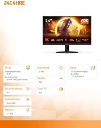 De AOC 24G4HRE is een 23,8" gamingmonitor die 200 Hz verversingssnelheid, Fast IPS-technologie en 1 ms GtG / 0,5 ms MPRT combineert voor perfect vloeiend beeld in snelle scènes. HDR10 levert levendige kleuren en dieper contrast, terwijl Adaptive Sync en G‑SYNC compatibiliteit tearing en haperingen elimineren.