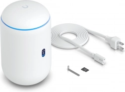 Ubiquiti UniFi Dream Router 7 is een krachtige tri‑band router voor thuis en kleine bedrijven met ondersteuning voor Wi‑Fi 7 (802.11be), geïntegreerde 10G SFP+ WAN, 2,5 GbE-poorten en PoE‑uitgang 15,4 W. Biedt topsnelheden tot 5,7 Gbps (6 GHz), 4,3 Gbps (5 GHz) en 688 Mbps (2,4 GHz), beheer van meer dan 300 clients, een voorgeïnstalleerde 64GB microSD voor UniFi Protect en volledige integratie van de apps UNIFI Network, Protect, Access, Talk en Connect.