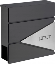 Deze antracietkleurige brievenbus valt op door het strakke design, geaccentueerd met geometrische uitsparingen en de minimalistische tekst “POST”. Dankzij de duurzame materialen en poedercoating is hij ideaal voor langdurig gebruik buitenshuis.