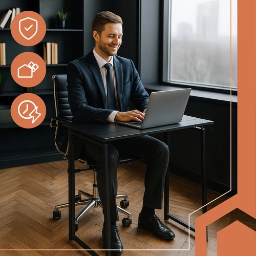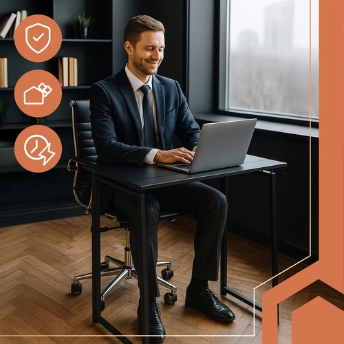 Minimalistisch industrieel design met een stevig metalen frame geeft zekerheid bij het werken met een laptop en documenten.