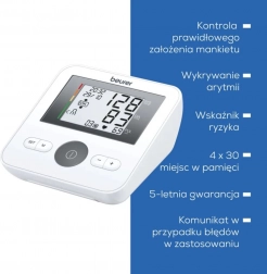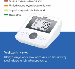 De BEURER BM 27 is een praktische bovenarmbloeddrukmeter voor nauwkeurig en comfortabel meten in huis. Dankzij het grote, gemakkelijk af te lezen display en de kleurenclassificatie van de resultaten beoordeelt u uw bloeddrukwaarden snel. De geïntegreerde controle van het correct omdoen van de manchet helpt betrouwbare resultaten bij elke meting te waarborgen.