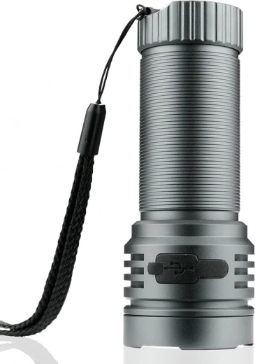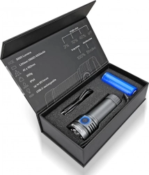 De duurzame behuizing van aluminiumlegering met IPX4-bescherming kan veeleisende omstandigheden, regen en dagelijks gebruik aan. De verwisselbare Li‑ion accu van 4000 mAh garandeert lange werktijd; opladen gebeurt eenvoudig via USB‑C in ongeveer 7 uur. In de doos vindt u ook een polsriem en een cadeauverpakking – klaar om elke avonturier te plezieren.
