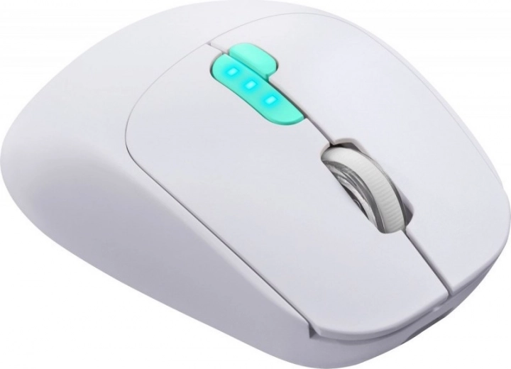 Stijlvolle draadloze muis voor werk en studie met verbinding via Bluetooth of 2,4 GHz USB-adapter. Biedt een optische sensor tot 1600 DPI met 3 gevoeligheidsstanden, een ingebouwde batterij van 400 mAh, 2 zijknoppen voor snelle bediening en teflon glijvlakken voor soepele beweging.