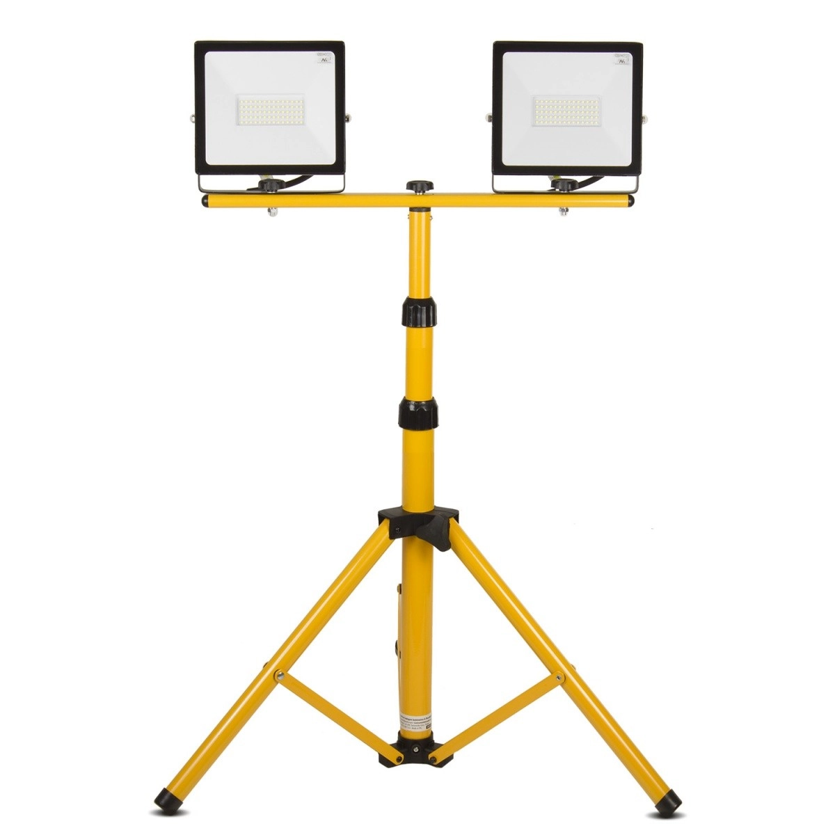 Lichte en stabiele standaard voor de montage van maximaal twee LED-schijnwerpers – ideaal voor op de bouw en in de thuiswerkplaats. Biedt een verstelbare hoogte van 62–150 cm, draagvermogen tot 10 kg, snel monteren zonder gereedschap en een inklapbare constructie voor eenvoudig transport.