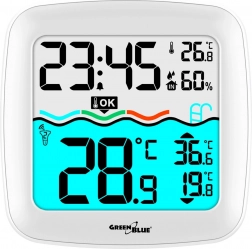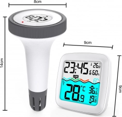 Geniet van comfortabele controle over de omstandigheden in huis en in de tuin. Dit weerstation met drijvende sensor voor het zwembad toont direct de watertemperatuur en geeft tegelijk de binnentemperatuur, luchtvochtigheid, tijd en kalender weer. Dankzij draadloze overdracht met een bereik tot 60 meter krijg je nauwkeurige data zonder onnodige kabels.