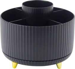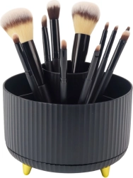 Houd je make-up netjes met deze compacte organizer die soepel 360° draait en direct toegang biedt tot al je spullen. Het open ontwerp beperkt de hoogte niet, zodat je ook langere kwasten en potloden comfortabel kunt opbergen. De minimalistische look in het zwart past zowel thuis als in de professionele salon.