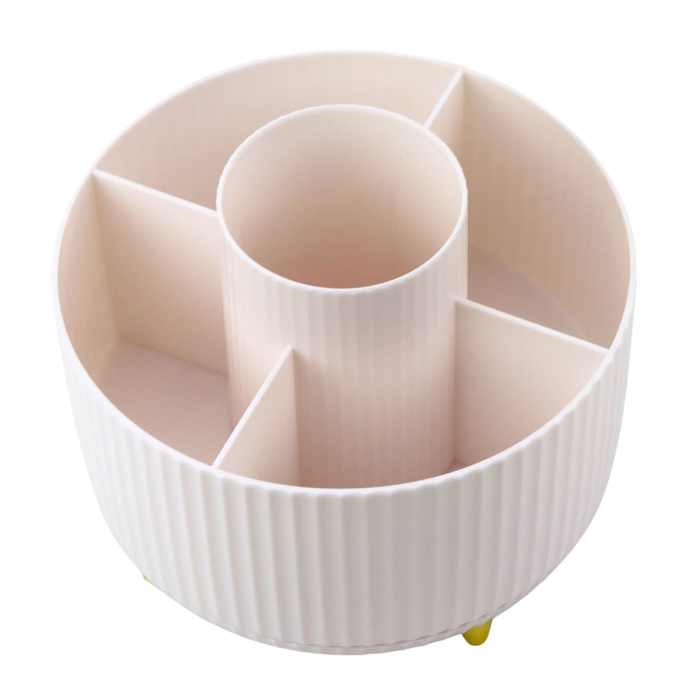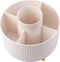 Houd je kaptafel overzichtelijk en elegant. De draaibare organizer met een diameter van 14 cm biedt snelle toegang tot al je cosmetica – een lichte draai is genoeg. Het open design beperkt de hoogte van de opslag niet, zodat ook lange kwasten of oog- en lippotloden gemakkelijk passen.