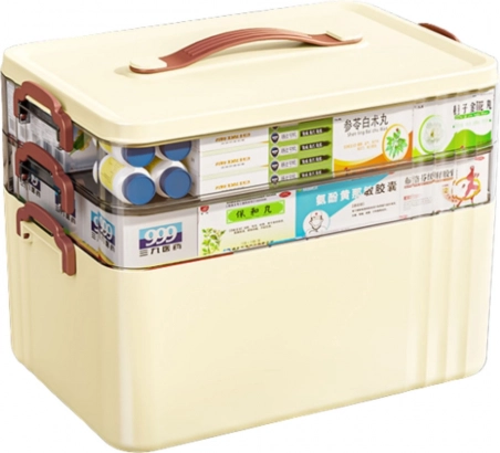 Praktische en elegante medicijnorganizer met een meerlagige constructie voor overzichtelijke opslag van medicijnen, verbanden en eerstehulpartikelen. Dankzij de modulaire opbouw kun je lagen eenvoudig toevoegen of verwijderen, zodat je altijd precies zoveel ruimte hebt als je nodig hebt. Grote capaciteit, duurzame HIPS-constructie, bescherming tegen vocht en een ergonomische draaggreep maken dit de ideale keuze voor elk huishouden.